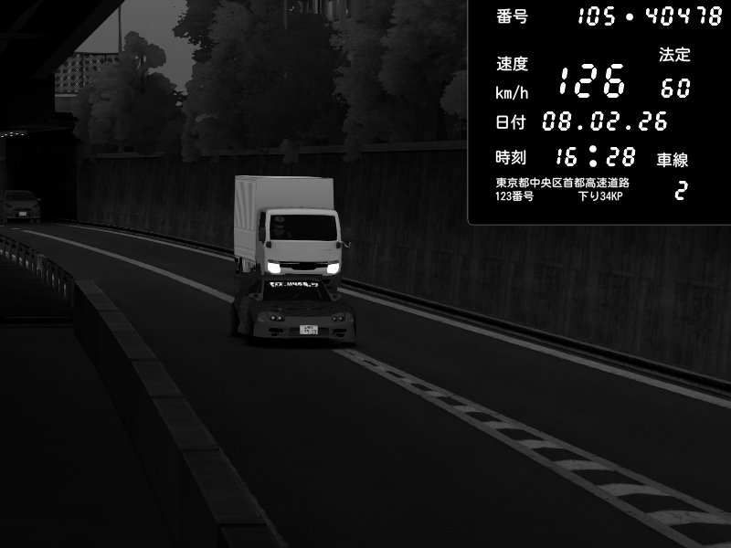 | 2026/02/08 16:28 | C1外回り 京橋 | 126 / 60 km/h | Pit Road M - Mitsubishi GTO Twin Turbo | CAPTURE |