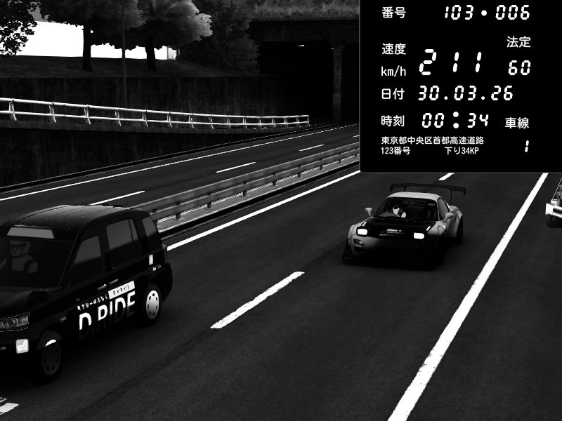 | 2026/03/30 00:23 | C1内回り 竹橋JCT | 150 / 60 km/h | Mazda RX-7 FD3S FEED Afflux GT3 | CAPTURE |
