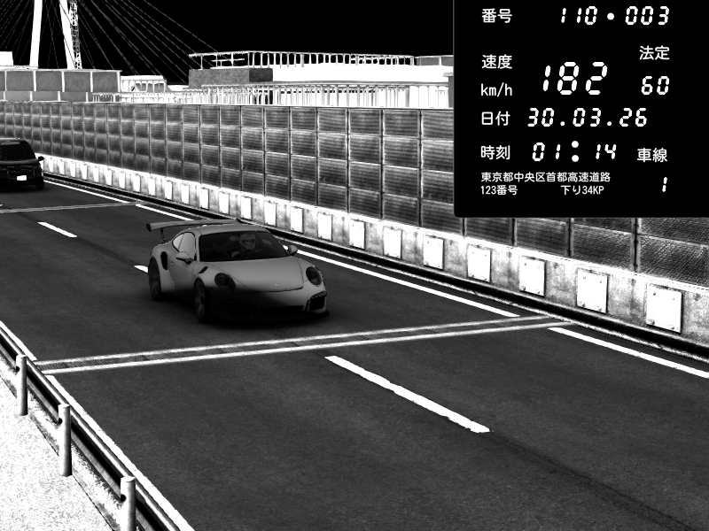 | 2026/03/30 01:14 | K1上り 羽田 | 182 / 60 km/h | Porsche 911 GT3 RS | CAPTURE |