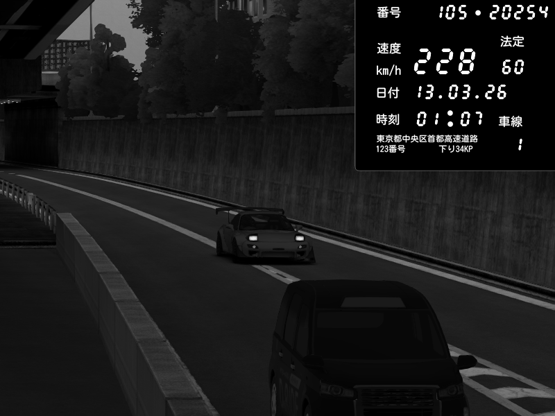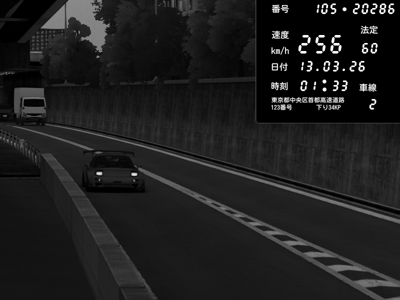 | 2026/03/13 01:30 | C1外回り 芝公園 | 207 / 60 km/h | Mazda RX-7 FD3S FEED Afflux GT3 | CAPTURE |