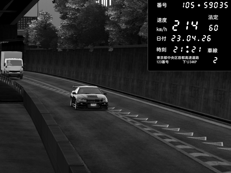 | 2026/04/23 21:21 | C1外回り 京橋 | 214 / 60 km/h | Nissan Skyline GT-R R34 Nismo Omori Factory S1 | CAPTURE |
