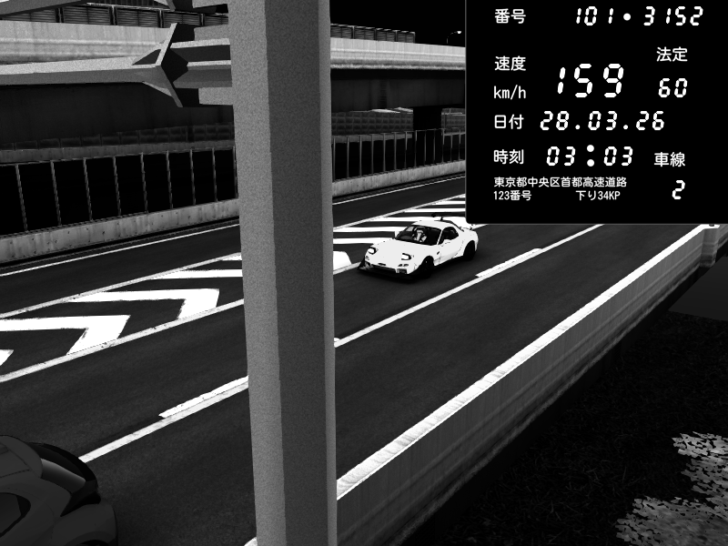 | 2026/03/28 03:03 | C1内回り 竹橋JCT | 159 / 60 km/h | Mazda RX-7 FD3S FEED Afflux GT3 | CAPTURE |