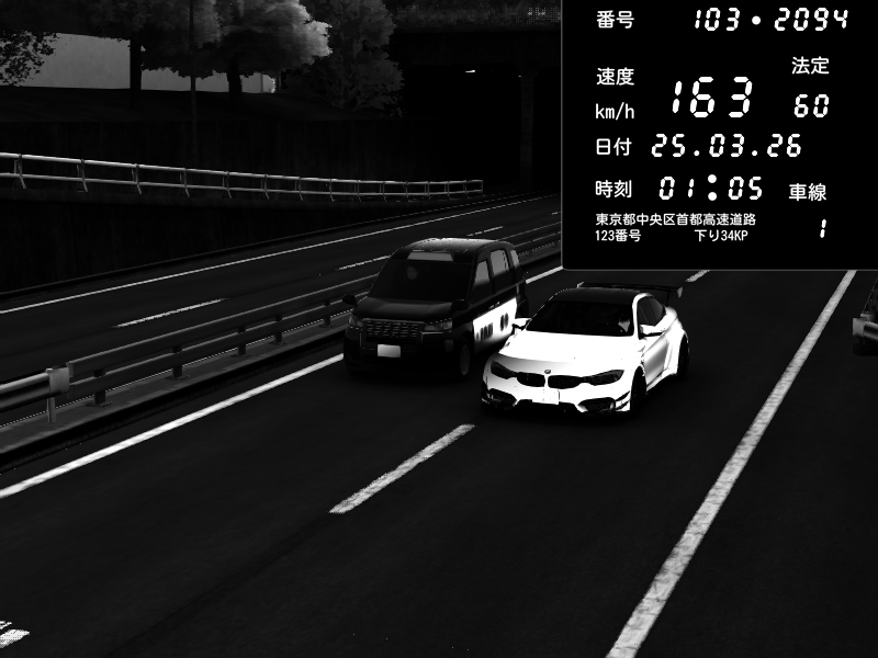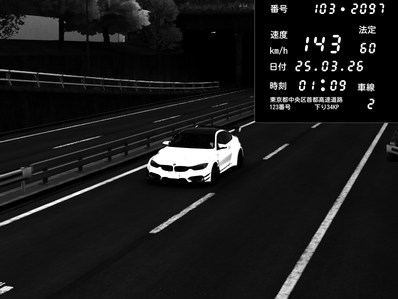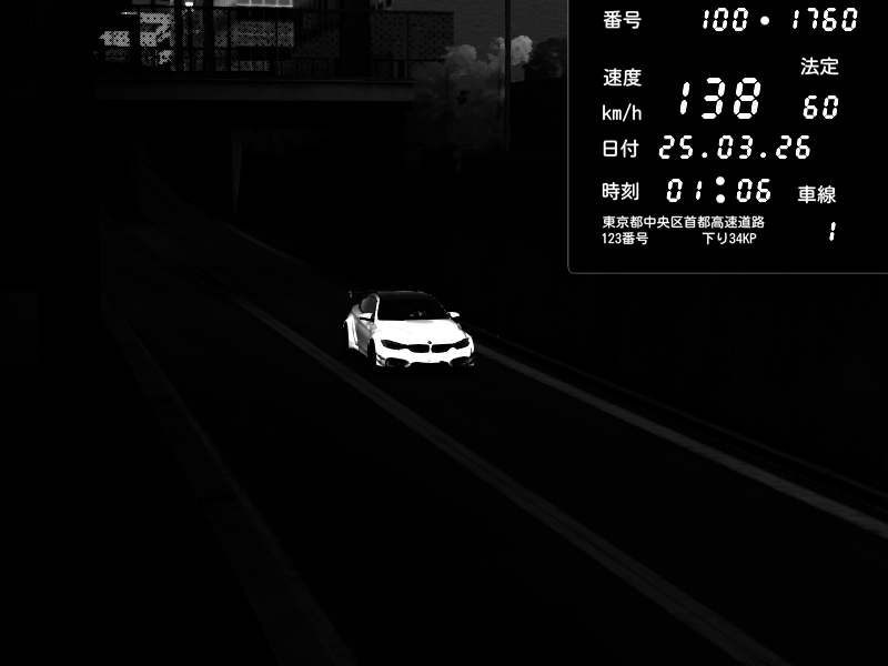 | 2026/03/25 01:09 | C1内回り 銀座 | 143 / 60 km/h | BMW M4 crash.Sp Varis Widebody | CAPTURE |