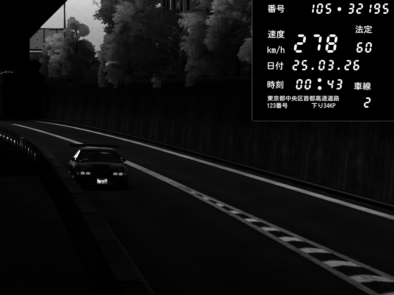| 2026/03/25 00:43 | C1外回り 京橋 | 278 / 60 km/h | Nissan Skyline GTR R33 (S3 - Wangan) | CAPTURE |