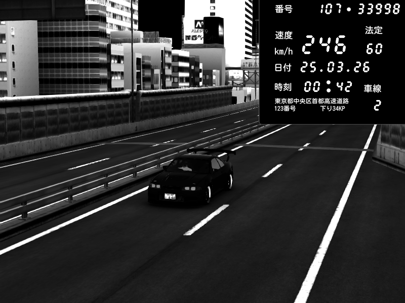 | 2026/03/25 00:43 | C1外回り 新富町 | 155 / 60 km/h | Nissan Skyline GTR R33 (S3 - Wangan) | CAPTURE |