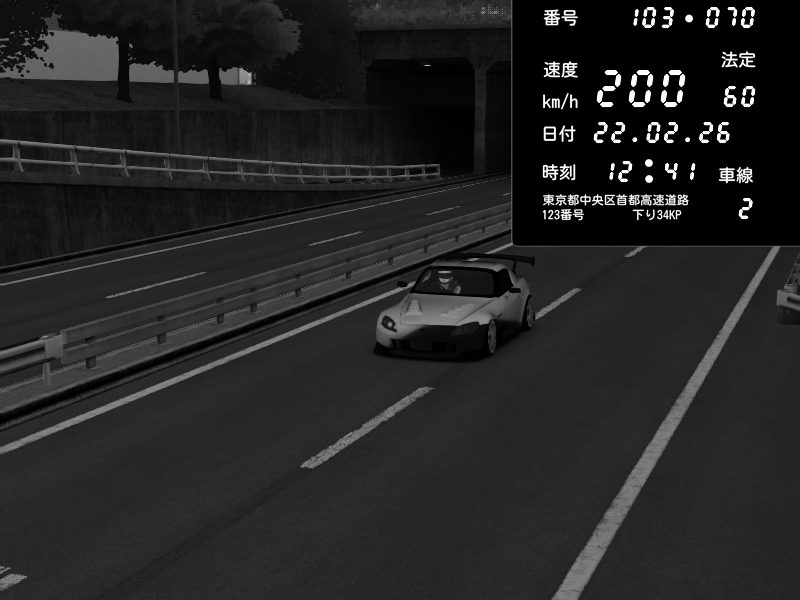 | 2026/02/22 12:41 | C1内回り 銀座 | 200 / 60 km/h | Honda S2000 (AP2 - Legendary) | CAPTURE |