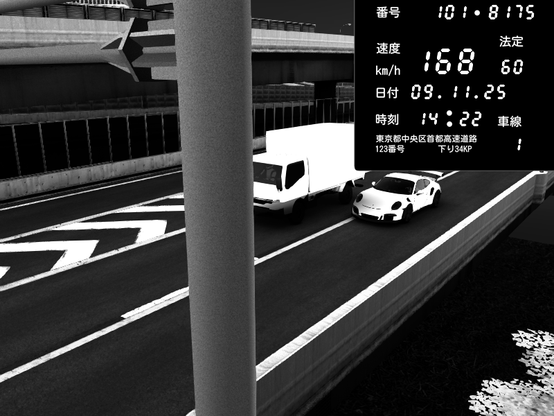 | 2025/11/09 14:22 | C1内回り 竹橋JCT | 168 / 60 km/h | Porsche 911 GT3 RS | CAPTURE |