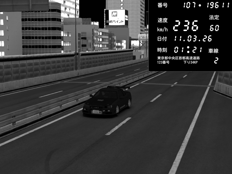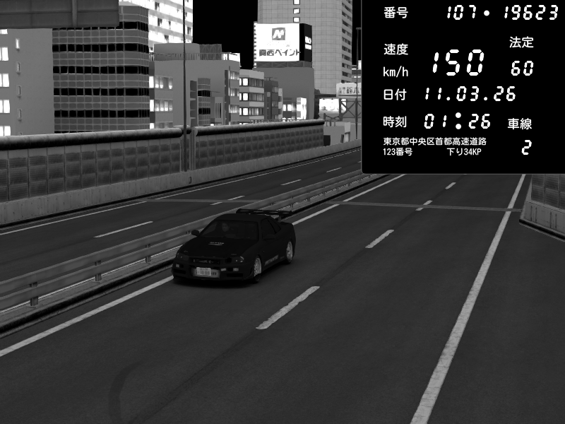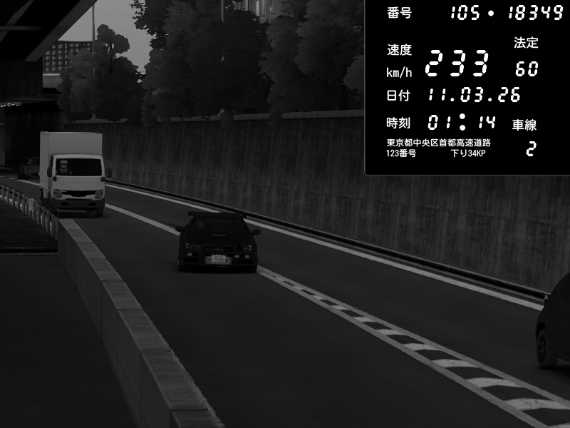 | 2026/03/11 01:14 | C1外回り 新富町 | 146 / 60 km/h | Nissan Skyline GT-R R34 Nismo Omori Factory S1 | CAPTURE |