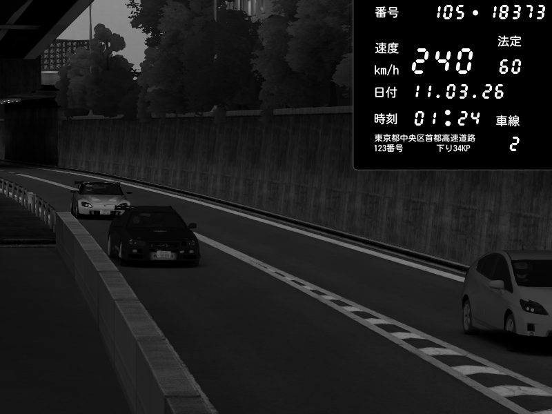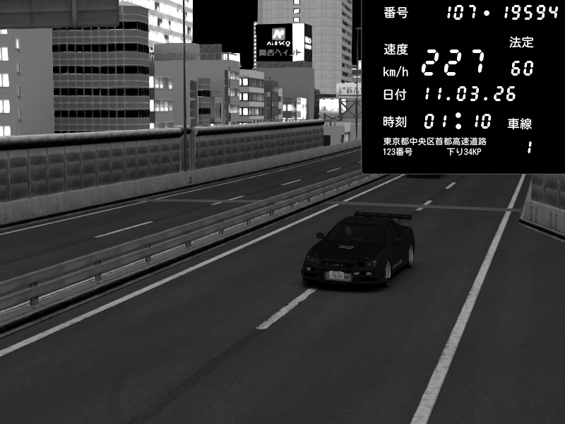 | 2026/03/11 01:24 | C1外回り 京橋 | 240 / 60 km/h | Nissan Skyline GT-R R34 Nismo Omori Factory S1 | CAPTURE |