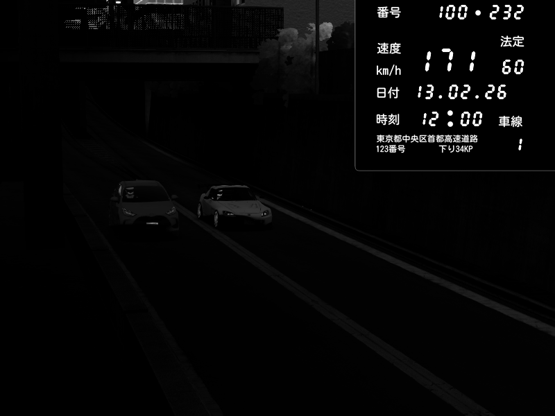 | 2026/02/13 12:01 | C1内回り 京橋 | 171 / 60 km/h | Honda S2000 (AP2 - Legendary) | CAPTURE |