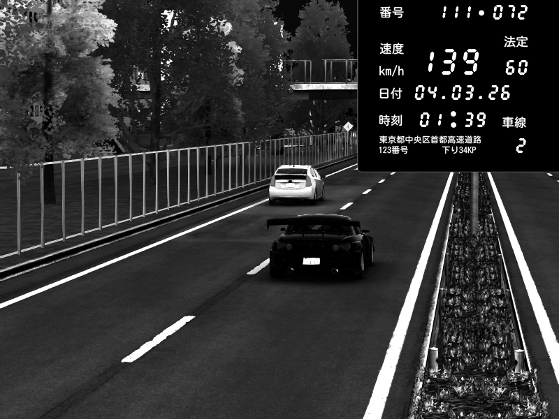 | 2026/03/04 01:40 | 1号下り 平和島 | 139 / 60 km/h | Honda S2000 Turbo GT1 Amuse (AP1) | CAPTURE |