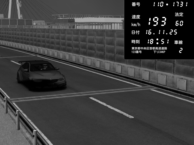 | 2025/11/16 18:51 | K1上り 羽田 | 193 / 60 km/h | BMW M4 crash.Sp Varis Widebody | CAPTURE |