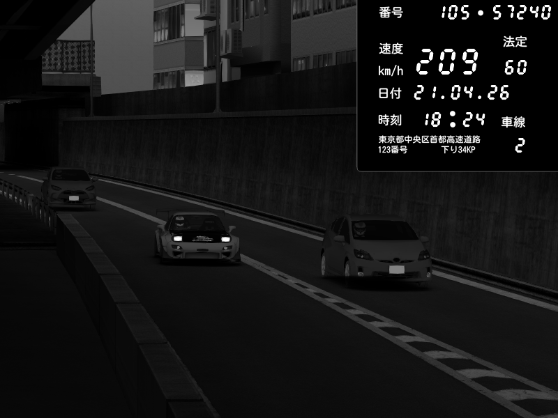 | 2026/04/21 18:24 | C1外回り 京橋 | 209 / 60 km/h | Mazda RX-7 FD3S FEED Afflux GT3 | CAPTURE |