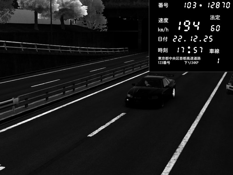 | 2025/12/22 17:57 | C1内回り 銀座 | 194 / 60 km/h | Nissan Skyline GT-R R34 Nismo Omori Factory S1 | CAPTURE |