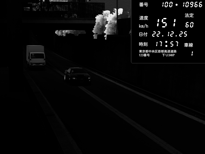 | 2025/12/22 17:20 | 4号下り 代々木 | 154 / 60 km/h | Nissan Skyline GT-R R34 Nismo Omori Factory S1 | CAPTURE |