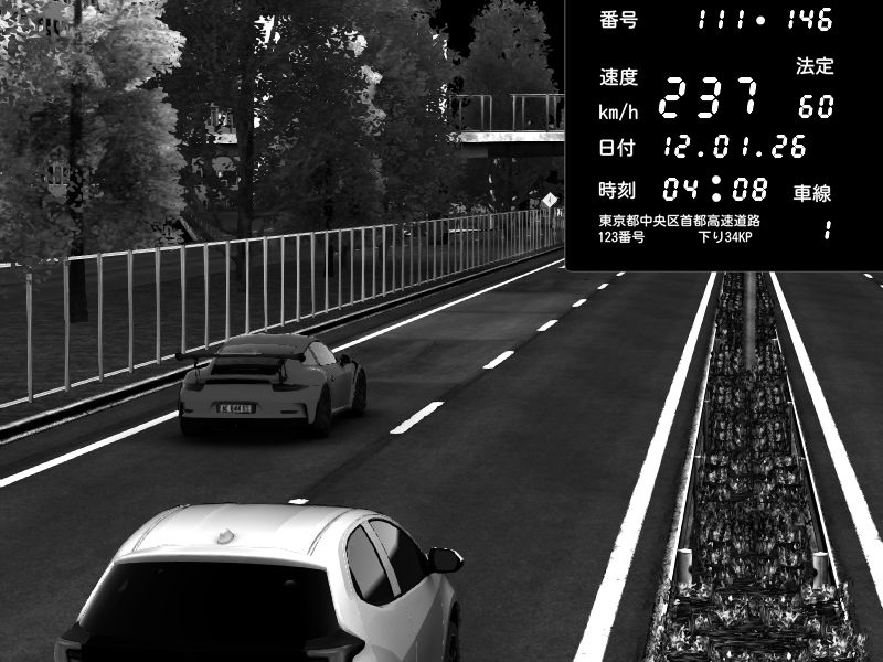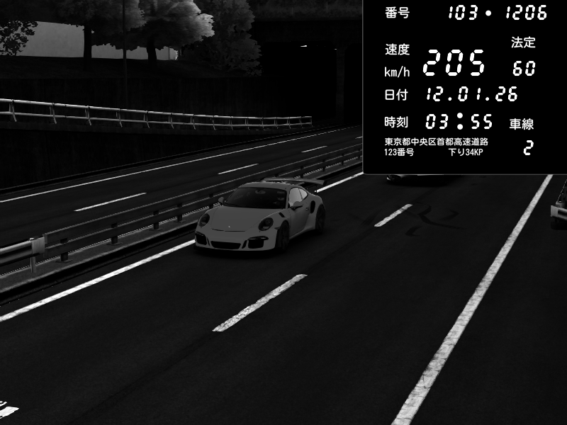 | 2026/01/12 03:55 | C1内回り 銀座 | 205 / 60 km/h | Porsche 911 GT3 RS | CAPTURE |