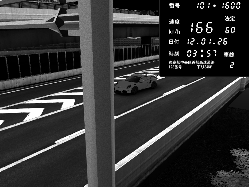 | 2026/01/12 03:57 | C1内回り 竹橋JCT | 166 / 60 km/h | Porsche 911 GT3 RS | CAPTURE |