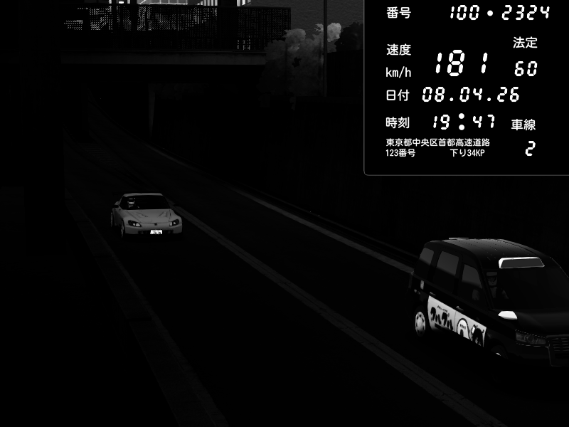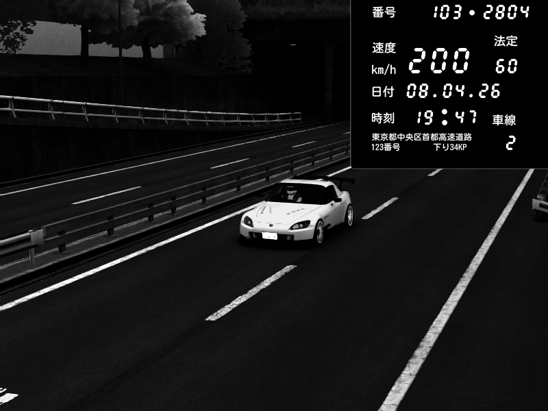 | 2026/04/08 19:58 | C1外回り 新富町 | 132 / 60 km/h | Honda S2000 (AP2 - Legendary) | CAPTURE |