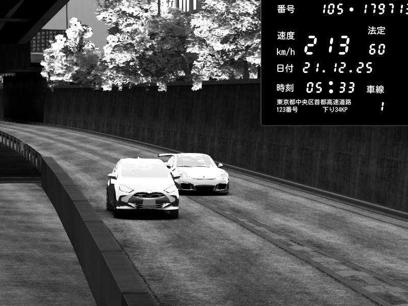 | 2025/12/21 05:33 | C1外回り 京橋 | 213 / 60 km/h | Porsche 911 GT3 RS | CAPTURE |