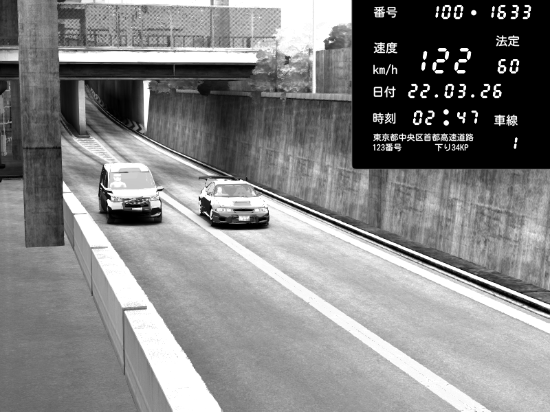 | 2026/03/22 02:47 | C1内回り 京橋 | 122 / 60 km/h | Nissan Skyline GTR R33 (S3 - Wangan) | CAPTURE |