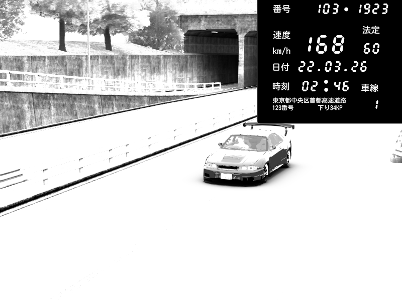 | 2026/03/22 02:46 | C1内回り 銀座 | 168 / 60 km/h | Nissan Skyline GTR R33 (S3 - Wangan) | CAPTURE |