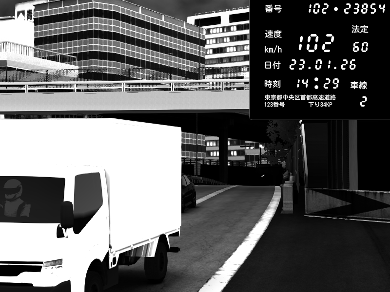 | 2026/01/23 14:29 | C1外回り 新富町 | 102 / 60 km/h | Mitsubishi Lancer Evolution V Wangan Spec | CAPTURE |