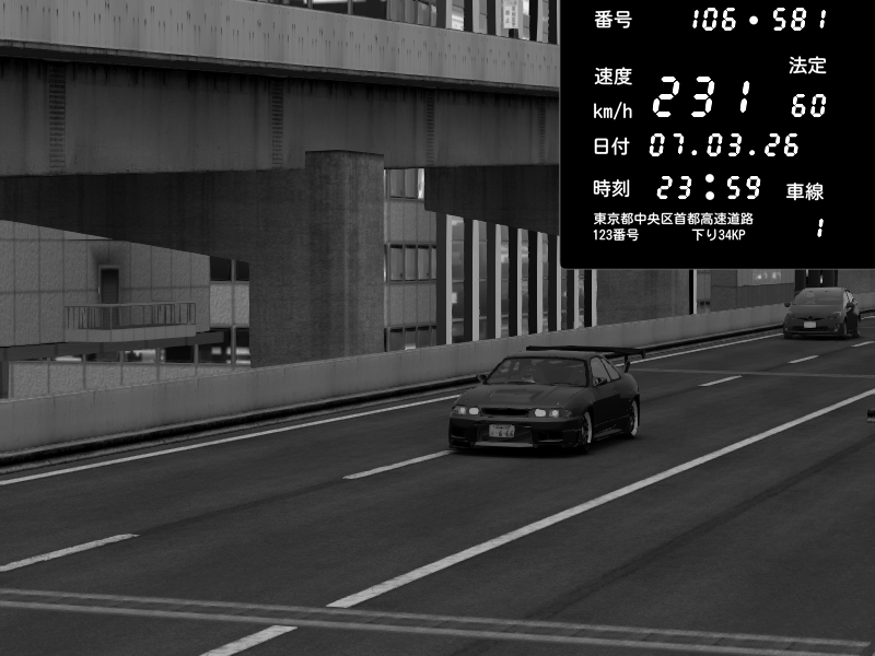 | 2026/03/07 23:59 | 9号下り 木場 | 231 / 60 km/h | Nissan Skyline GTR R33 (S3 - Wangan) | CAPTURE |