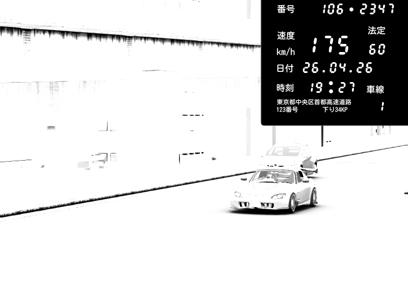 | 2026/04/26 18:49 | C1内回り 竹橋JCT | 136 / 60 km/h | Honda S2000 (AP2 - Legendary) | CAPTURE |