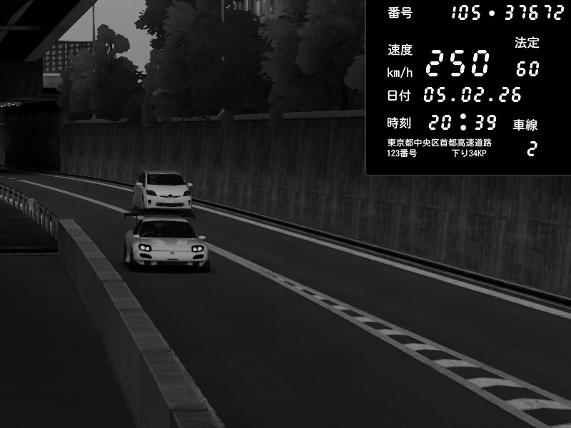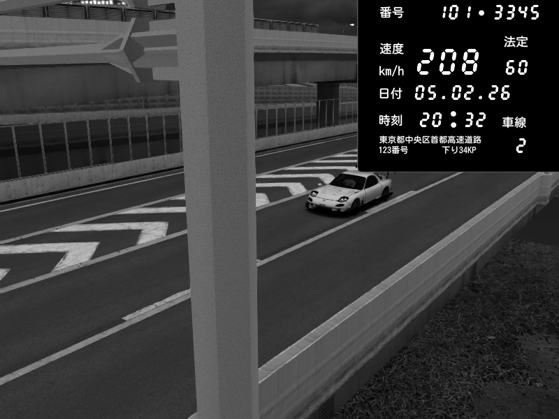 | 2026/02/05 20:32 | C1内回り 竹橋JCT | 208 / 60 km/h | Mazda RX-7 FD3S RE Amemiya | CAPTURE |