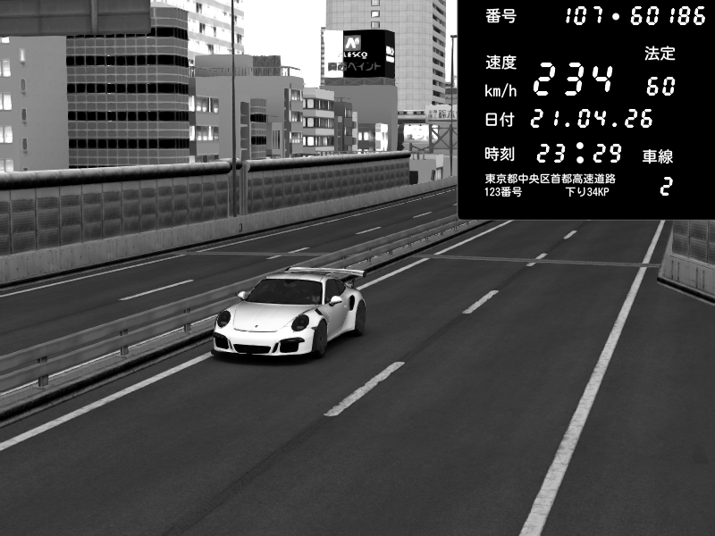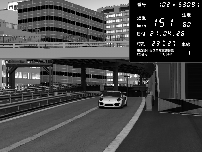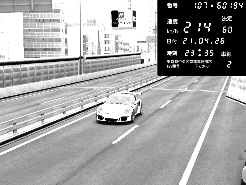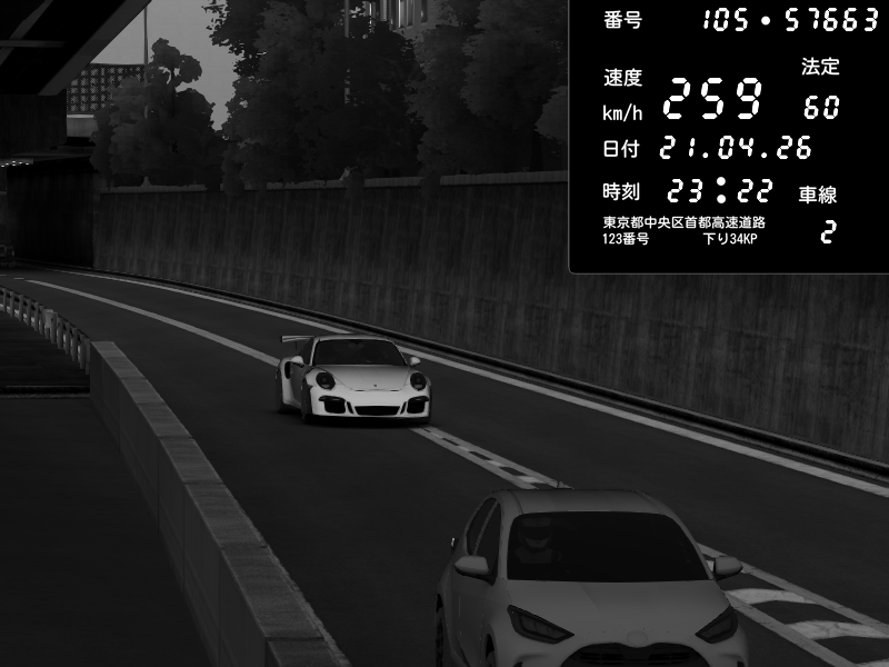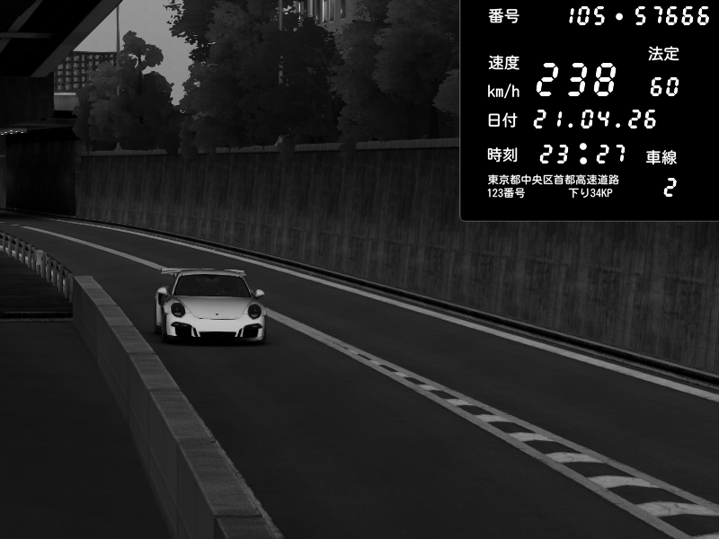 | 2026/04/21 23:55 | 4号下り 代々木 | 124 / 60 km/h | Porsche 911 GT3 RS | CAPTURE |