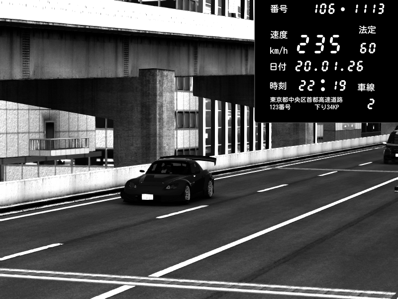 | 2026/01/20 22:29 | C1外回り 新富町 | 173 / 60 km/h | Honda S2000 Turbo GT1 Amuse (AP1) | CAPTURE |