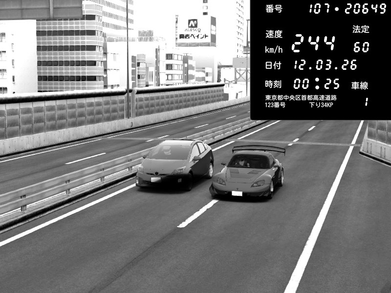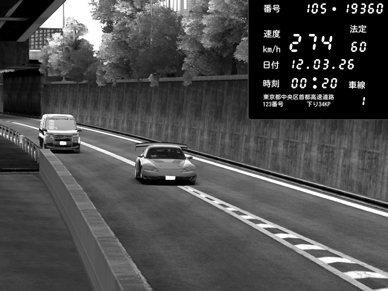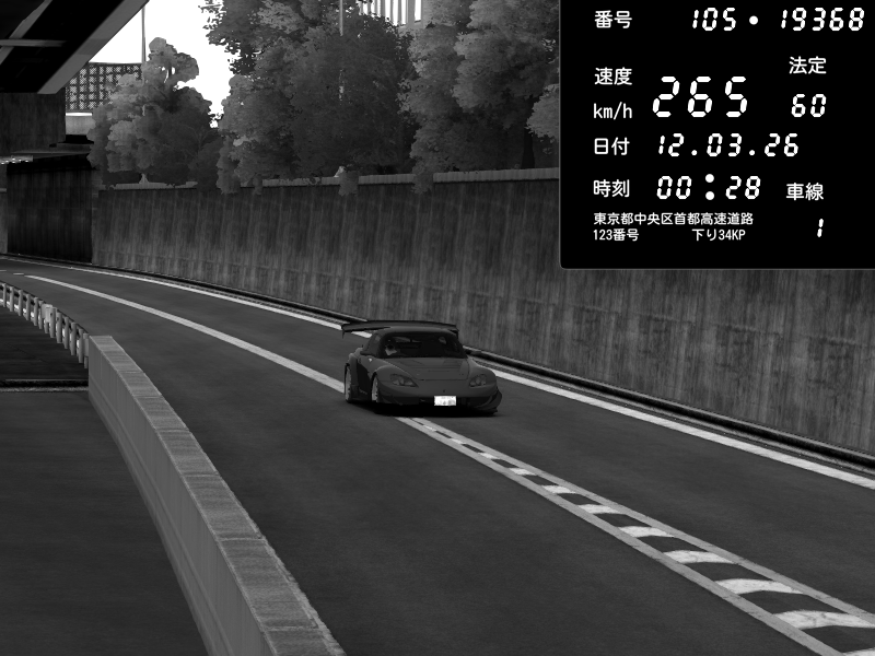 | 2026/03/12 00:20 | C1外回り 京橋 | 274 / 60 km/h | Honda S2000 Turbo GT1 Amuse (AP1) | CAPTURE |