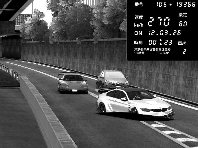 | 2026/03/12 00:20 | C1外回り 新富町 | 159 / 60 km/h | Honda S2000 Turbo GT1 Amuse (AP1) | CAPTURE |