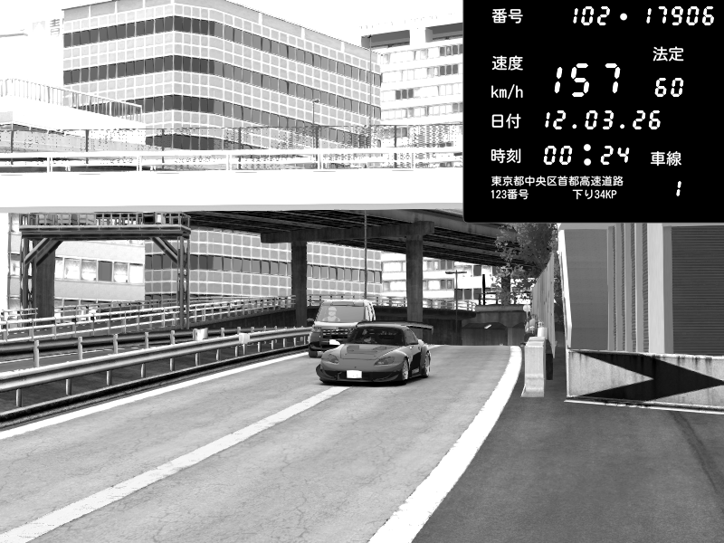 | 2026/03/12 00:24 | C1外回り 新富町 | 157 / 60 km/h | Honda S2000 Turbo GT1 Amuse (AP1) | CAPTURE |