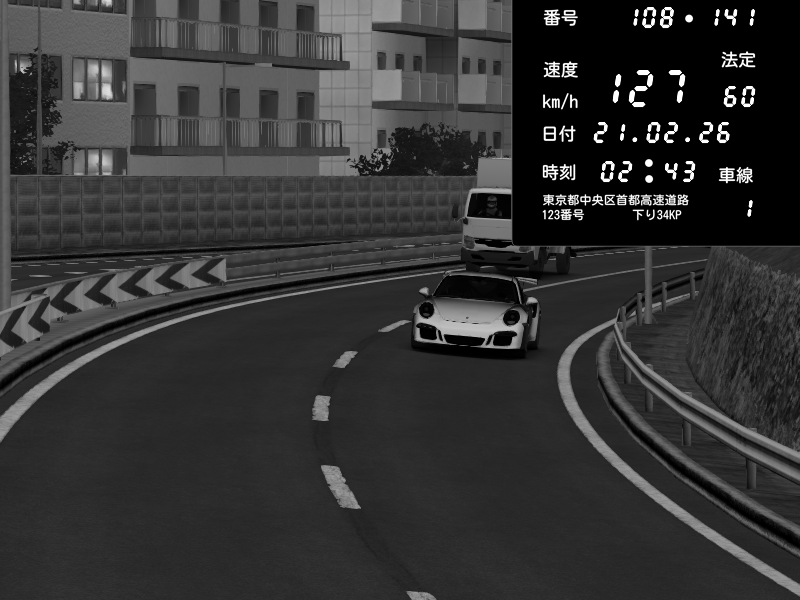 | 2026/02/21 02:43 | 4号下り 代々木 | 127 / 60 km/h | Porsche 911 GT3 RS | CAPTURE |