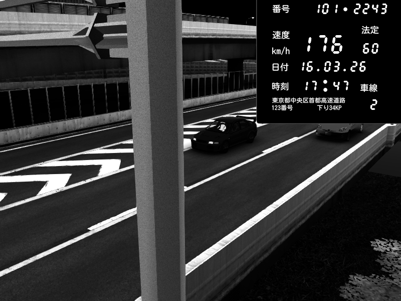 | 2026/03/16 17:47 | C1内回り 竹橋JCT | 176 / 60 km/h | Mitsubishi Lancer Evolution V Wangan Spec | CAPTURE |