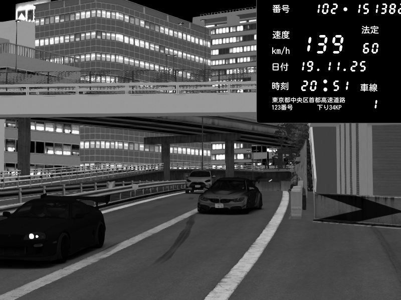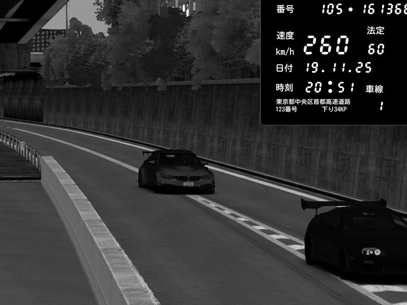 | 2025/11/19 20:56 | C1外回り 京橋 | 274 / 60 km/h | BMW M4 crash.Sp Varis Widebody | CAPTURE |