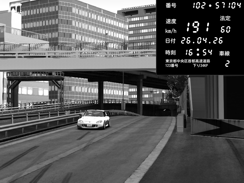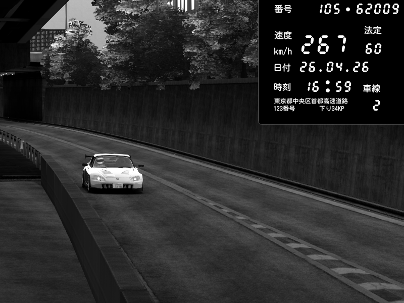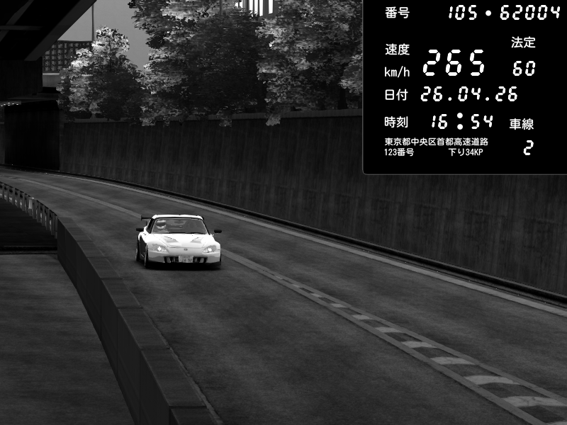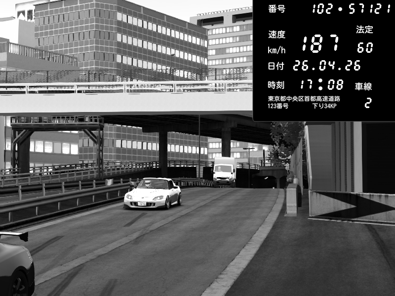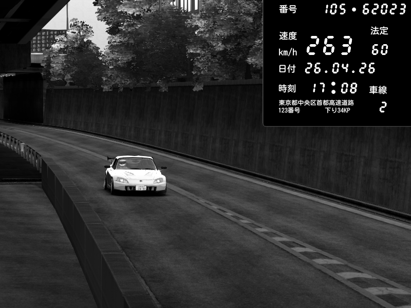 | 2026/04/26 16:59 | C1外回り 京橋 | 267 / 60 km/h | Honda S2000 (AP2 - Legendary) | CAPTURE |