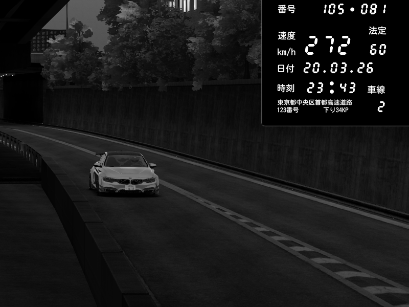 | 2026/03/20 23:43 | C1外回り 京橋 | 272 / 60 km/h | BMW M4 crash.Sp Varis Widebody | CAPTURE |