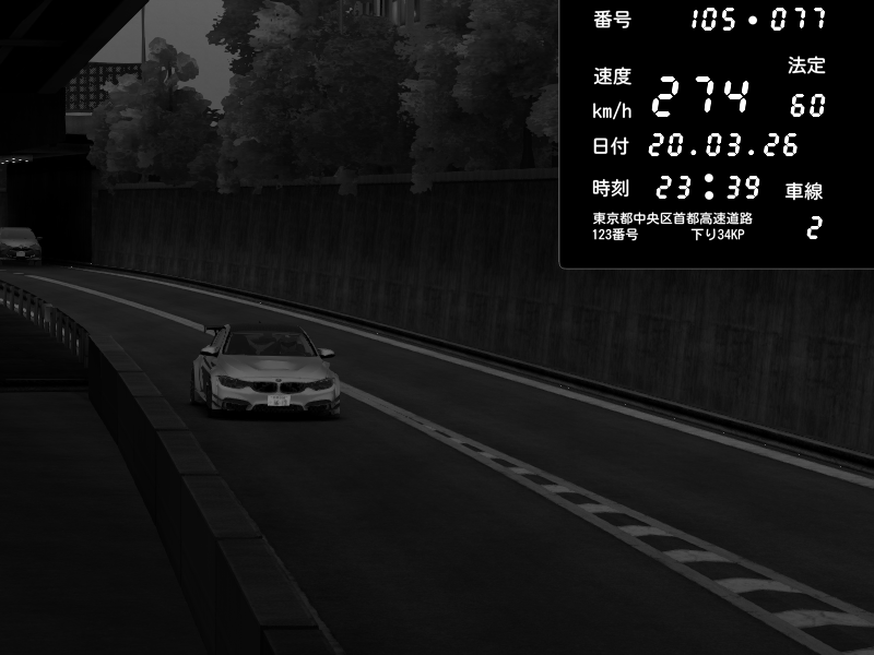 | 2026/03/20 23:39 | C1外回り 京橋 | 274 / 60 km/h | BMW M4 crash.Sp Varis Widebody | CAPTURE |