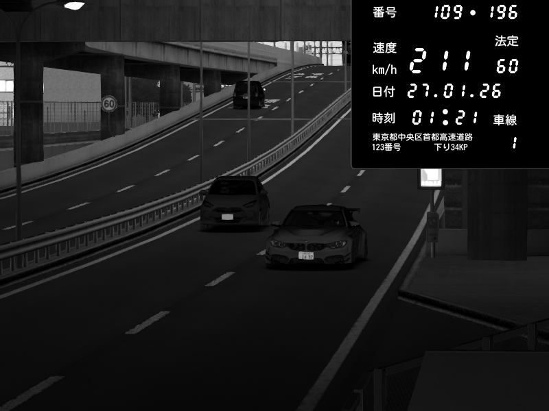 | 2026/01/13 03:39 | C1内回り 銀座 | 227 / 60 km/h | BMW M4 crash.Sp Varis Widebody | CAPTURE |