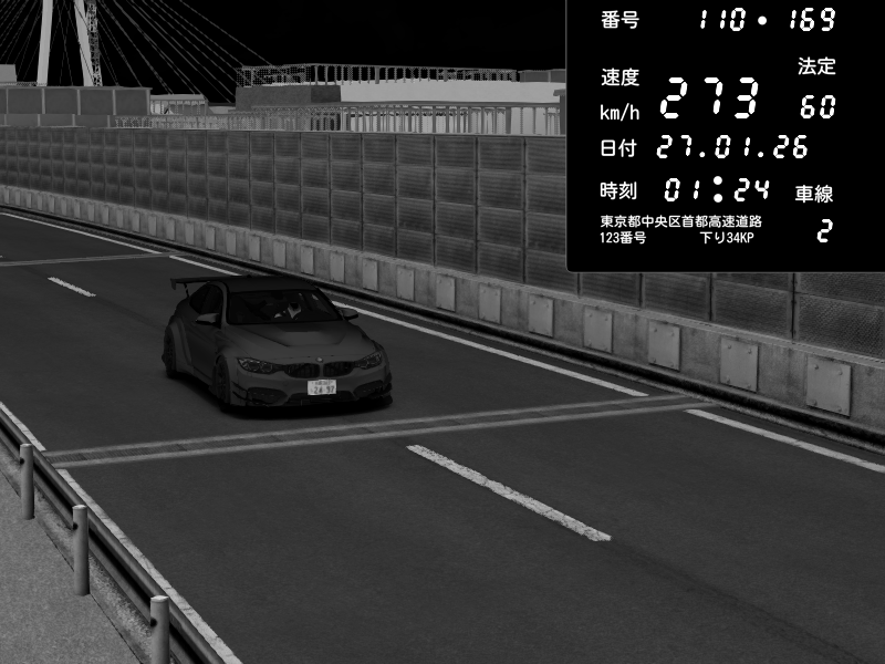 | 2026/01/27 01:24 | K1上り 羽田 | 273 / 60 km/h | BMW M4 crash.Sp Varis Widebody | CAPTURE |