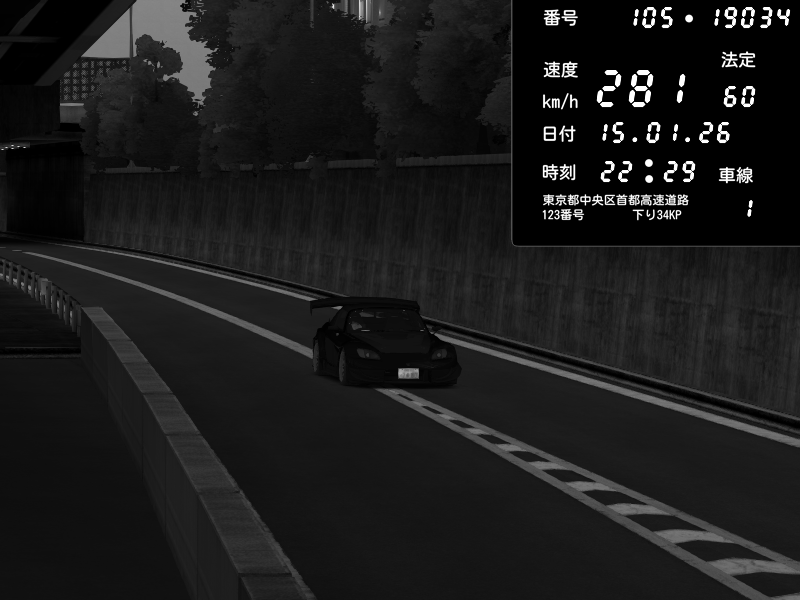 | 2026/01/15 22:29 | C1外回り 京橋 | 281 / 60 km/h | Honda S2000 Turbo GT1 Amuse (AP1) | CAPTURE |