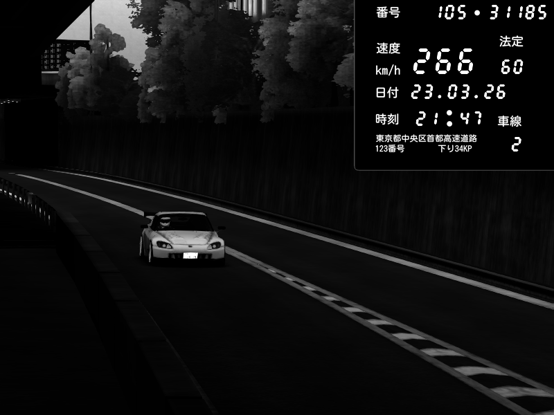 | 2026/03/23 21:47 | C1外回り 京橋 | 266 / 60 km/h | Honda S2000 (AP2 - Legendary) | CAPTURE |