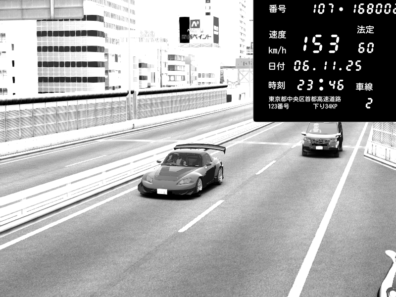 | 2025/11/06 23:38 | C1外回り 新富町 | 170 / 60 km/h | Honda S2000 Turbo GT1 Amuse (AP1) | CAPTURE |