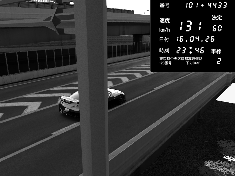 | 2026/04/16 23:46 | C1内回り 竹橋JCT | 131 / 60 km/h | Nissan GT-R NISMO 2017 | CAPTURE |