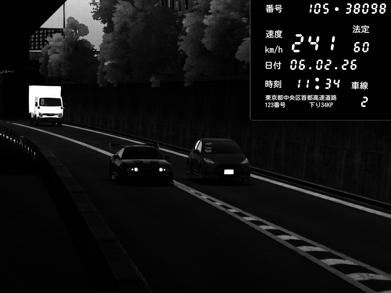 | 2026/02/06 11:34 | C1外回り 京橋 | 241 / 60 km/h | Toyota Supra MKIV Time Attack | CAPTURE |