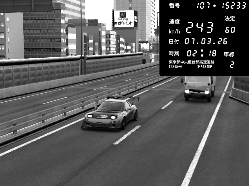 | 2026/03/07 02:22 | C1外回り 新富町 | 183 / 60 km/h | Mazda RX-7 FD3S FEED Afflux GT3 | CAPTURE |