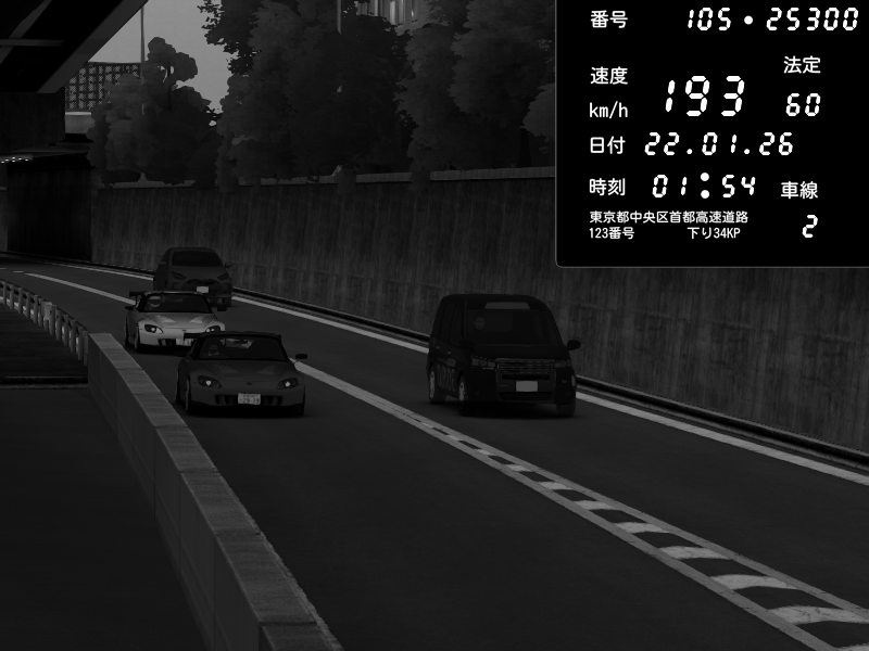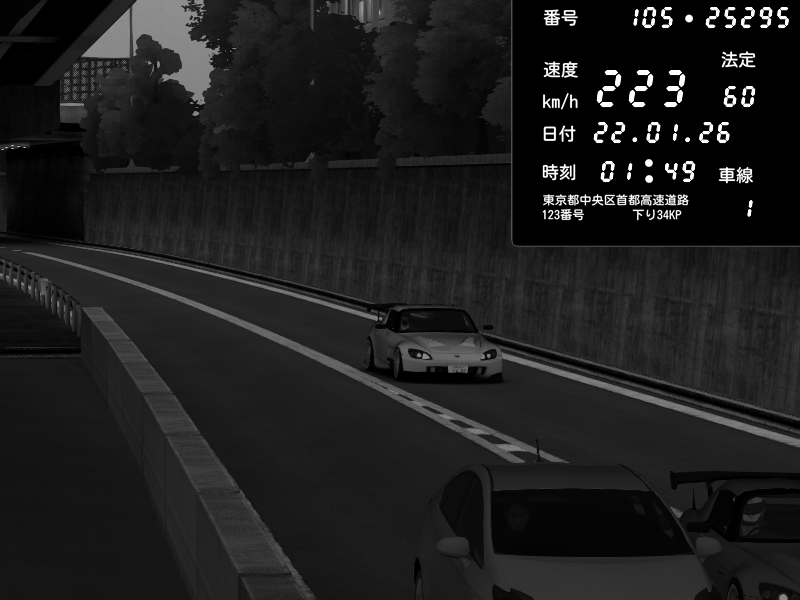 | 2026/01/22 01:54 | C1外回り 京橋 | 193 / 60 km/h | Honda S2000 (AP2 - Legendary) | CAPTURE |