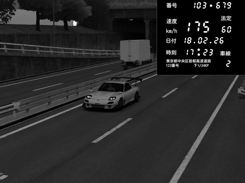 | 2026/02/18 17:23 | C1内回り 銀座 | 175 / 60 km/h | Mazda RX-7 FD3S RE Amemiya | CAPTURE |